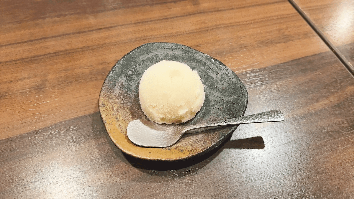 食後には飲み物か、アイスクリームが選べますが、今回は季節のアイスを選択しました。